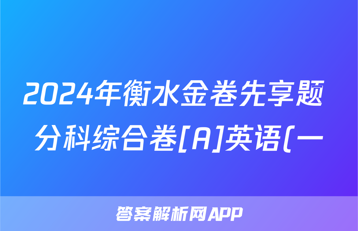 2024年衡水金卷先享题 分科综合卷[A]英语(一)1答案正在持续更新,目前2026届海淀八模答案网为大家整理了相关试题及答案,供大家查缺补漏,高效提升成绩。