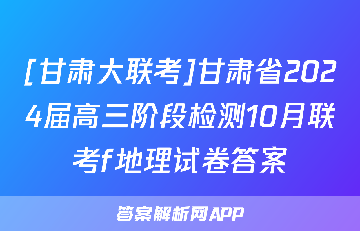 [甘肃大联考]甘肃省2024届高三阶段检测10月联考f地理试卷答案正在持续更新,目前2026届海淀八模答案网为大家整理了相关试题及答案,供大家查缺补漏,高效提升成绩。