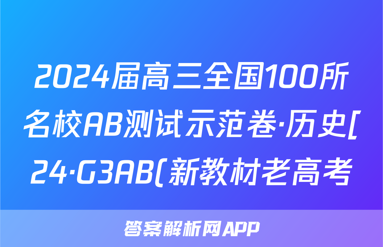 2024届高三全国100所名校AB测试示范卷·历史[24·G3AB(新教材老高考)·历史-R-必考-GX]一试题正在持续更新,目前2026届海淀八模答案网为大家整理了相关试题及答案,供大家查缺补漏,高效提升成绩。