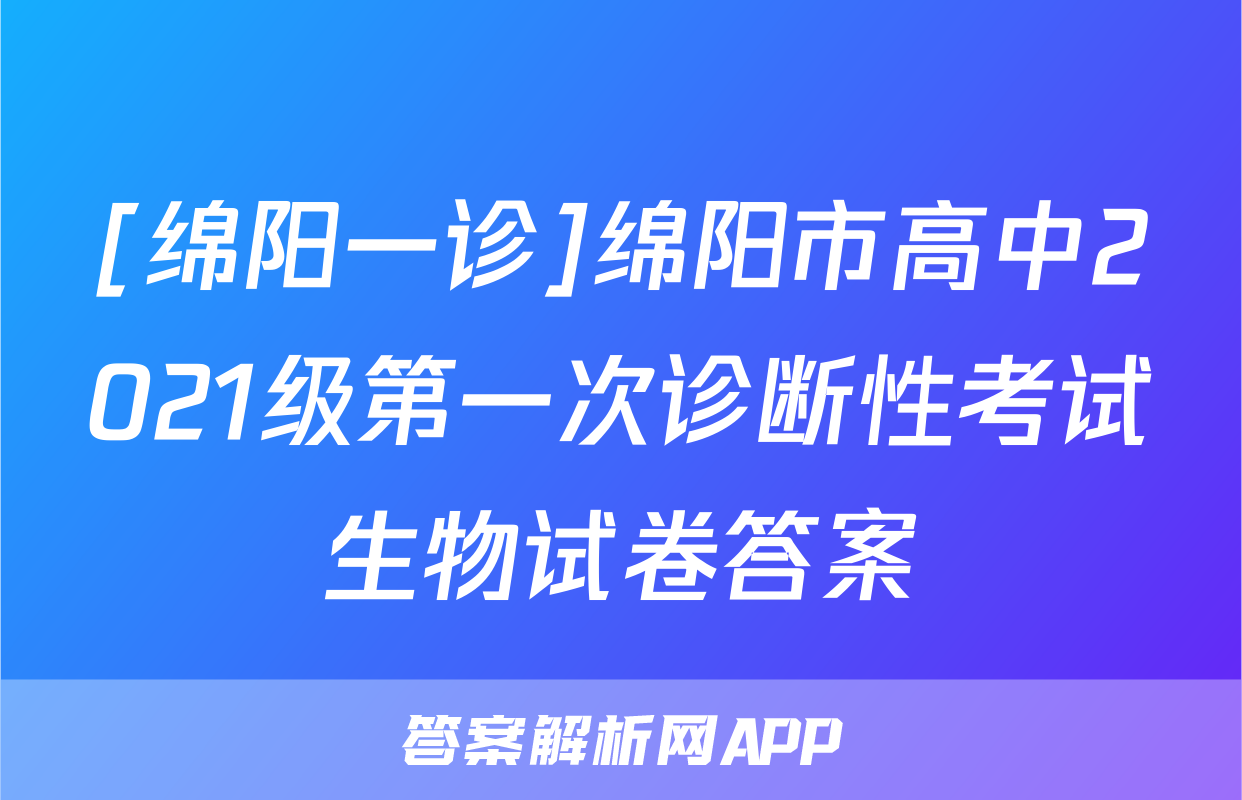 [绵阳一诊]绵阳市高中2021级第一次诊断性考试生物试卷答案正在持续更新,目前2026届海淀八模答案网为大家整理了相关试题及答案,供大家查缺补漏,高效提升成绩。