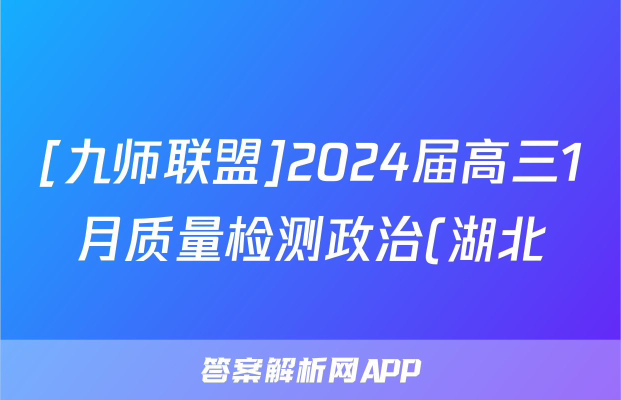 [九师联盟]2024届高三1月质量检测政治(湖北)答案