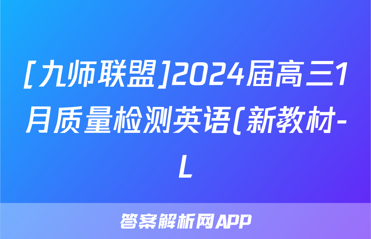 [九师联盟]2024届高三1月质量检测英语(新教材-L)答案