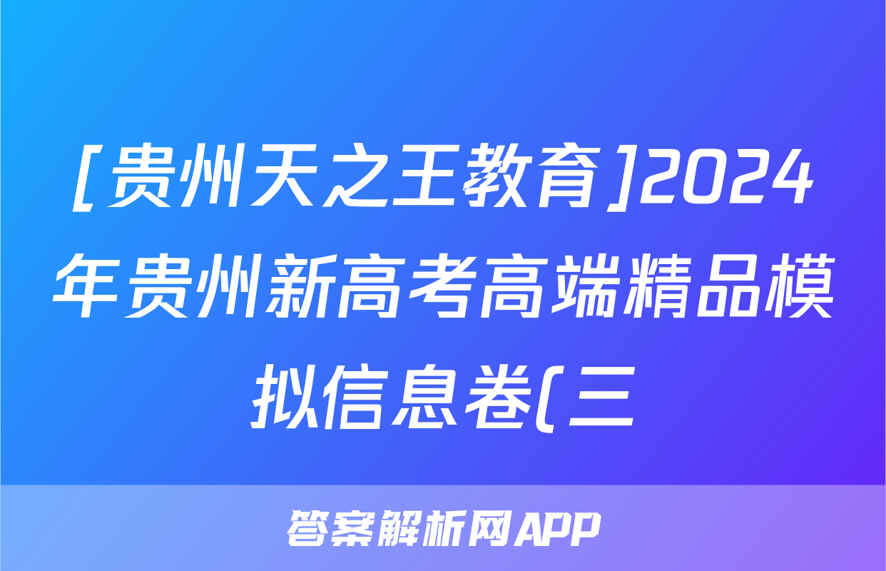 [贵州天之王教育]2024年贵州新高考高端精品模拟信息卷(三)3语文答案正在持续更新,目前2026届海淀八模答案网为大家整理了相关试题及答案,供大家查缺补漏,高效提升成绩。