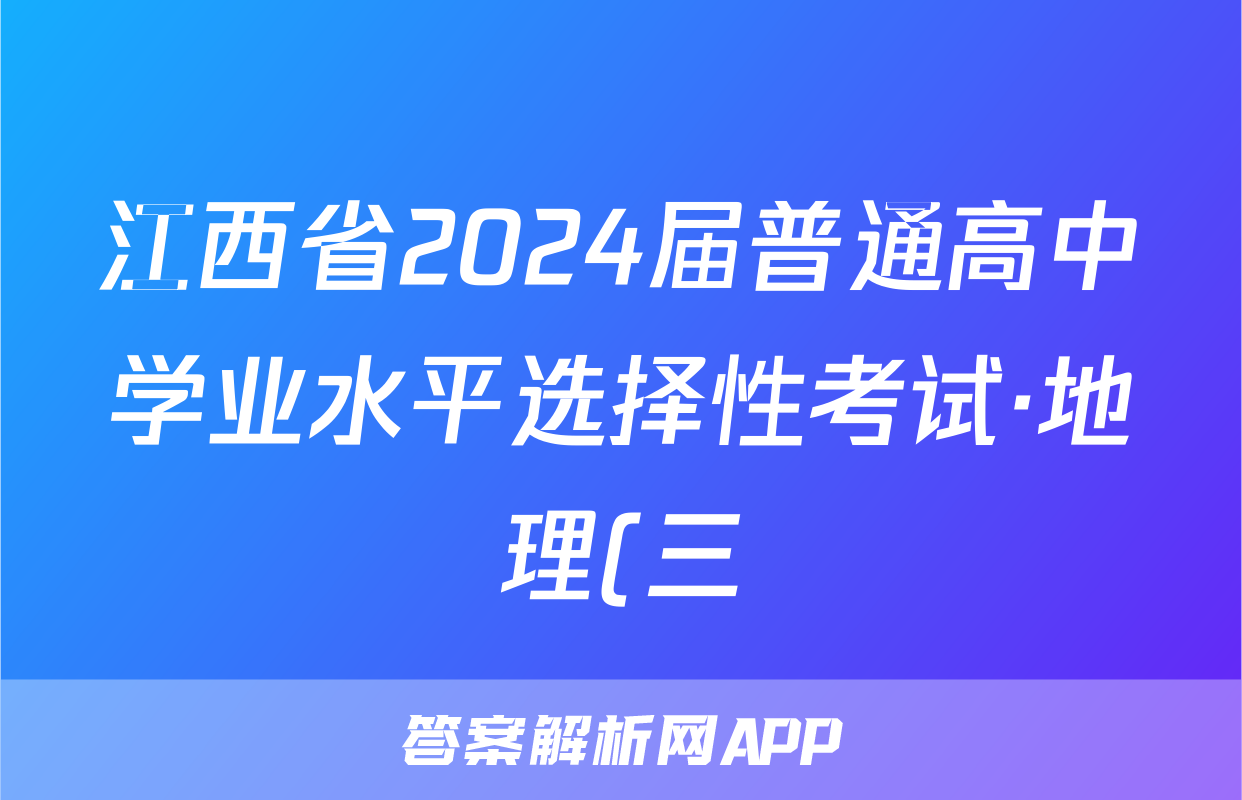 江西省2024届普通高中学业水平选择性考试·地理(三)3[24·(新高考)ZX·MNJ·地理·JX]试题正在持续更新,目前2026届海淀八模答案网为大家整理了相关试题及答案,供大家查缺补漏,高效提升成绩。