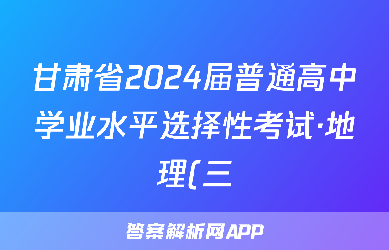甘肃省2024届普通高中学业水平选择性考试·地理(三)3[24·(新高考)ZX·MNJ·地理·GS]答案正在持续更新,目前2026届海淀八模答案网为大家整理了相关试题及答案,供大家查缺补漏,高效提升成绩。