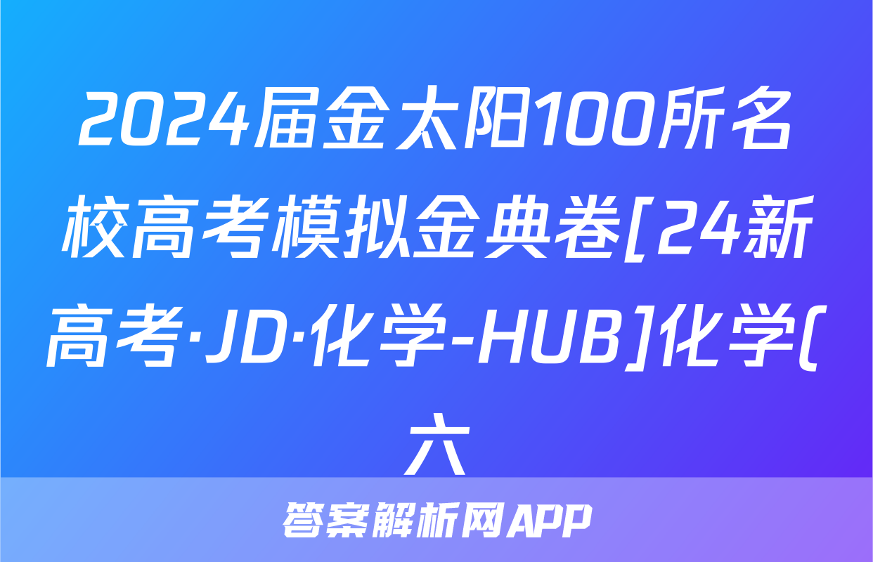 2024届金太阳100所名校高考模拟金典卷[24新高考·JD·化学-HUB]化学(六)6试题正在持续更新,目前2026届海淀八模答案网为大家整理了相关试题及答案,供大家查缺补漏,高效提升成绩。