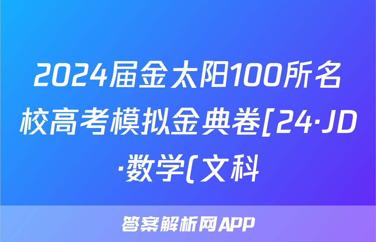 2024届金太阳100所名校高考模拟金典卷[24·JD·数学(文科)-QG]文科数学(九)9答案正在持续更新,目前2026届海淀八模答案网为大家整理了相关试题及答案,供大家查缺补漏,高效提升成绩。