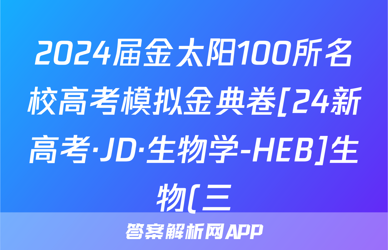 2024届金太阳100所名校高考模拟金典卷[24新高考·JD·生物学-HEB]生物(三)3答案正在持续更新,目前2026届海淀八模答案网为大家整理了相关试题及答案,供大家查缺补漏,高效提升成绩。