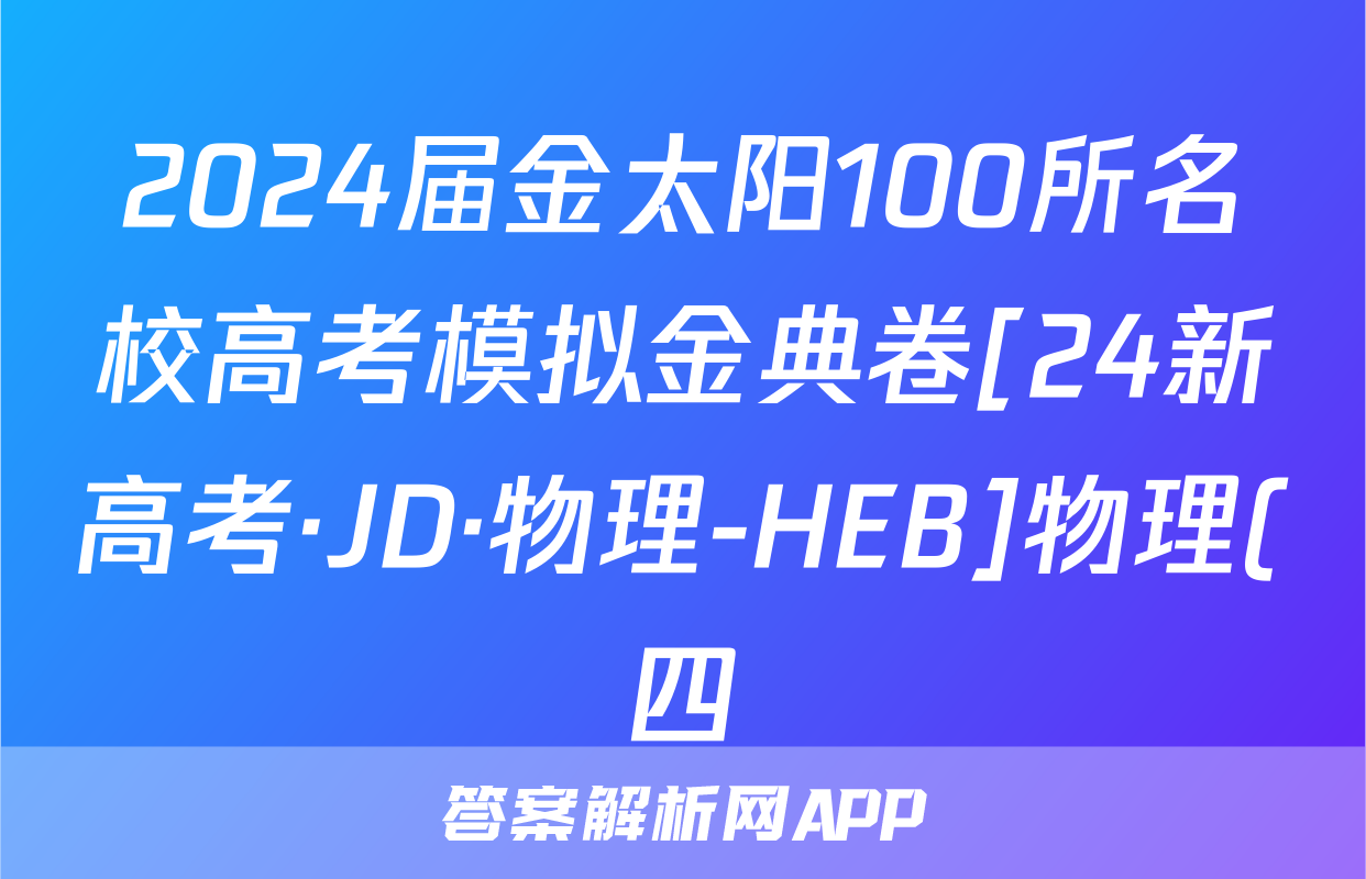 2024届金太阳100所名校高考模拟金典卷[24新高考·JD·物理-HEB]物理(四)4答案正在持续更新,目前2026届海淀八模答案网为大家整理了相关试题及答案,供大家查缺补漏,高效提升成绩。