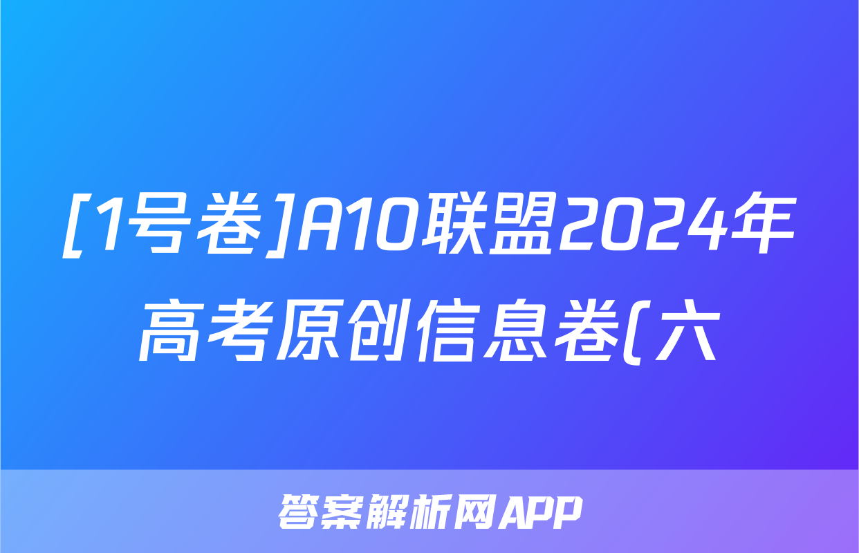 [1号卷]A10联盟2024年高考原创信息卷(六)6物理答案正在持续更新,目前2026届海淀八模答案网为大家整理了相关试题及答案,供大家查缺补漏,高效提升成绩。