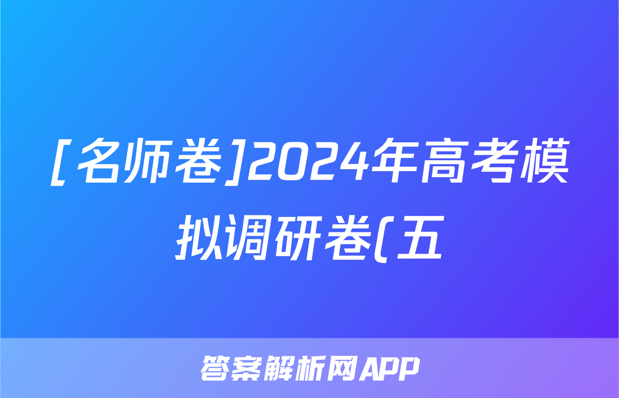 [名师卷]2024年高考模拟调研卷(五)5理科综合(老高考◆)试题正在持续更新,目前2026届海淀八模答案网为大家整理了相关试题及答案,供大家查缺补漏,高效提升成绩。