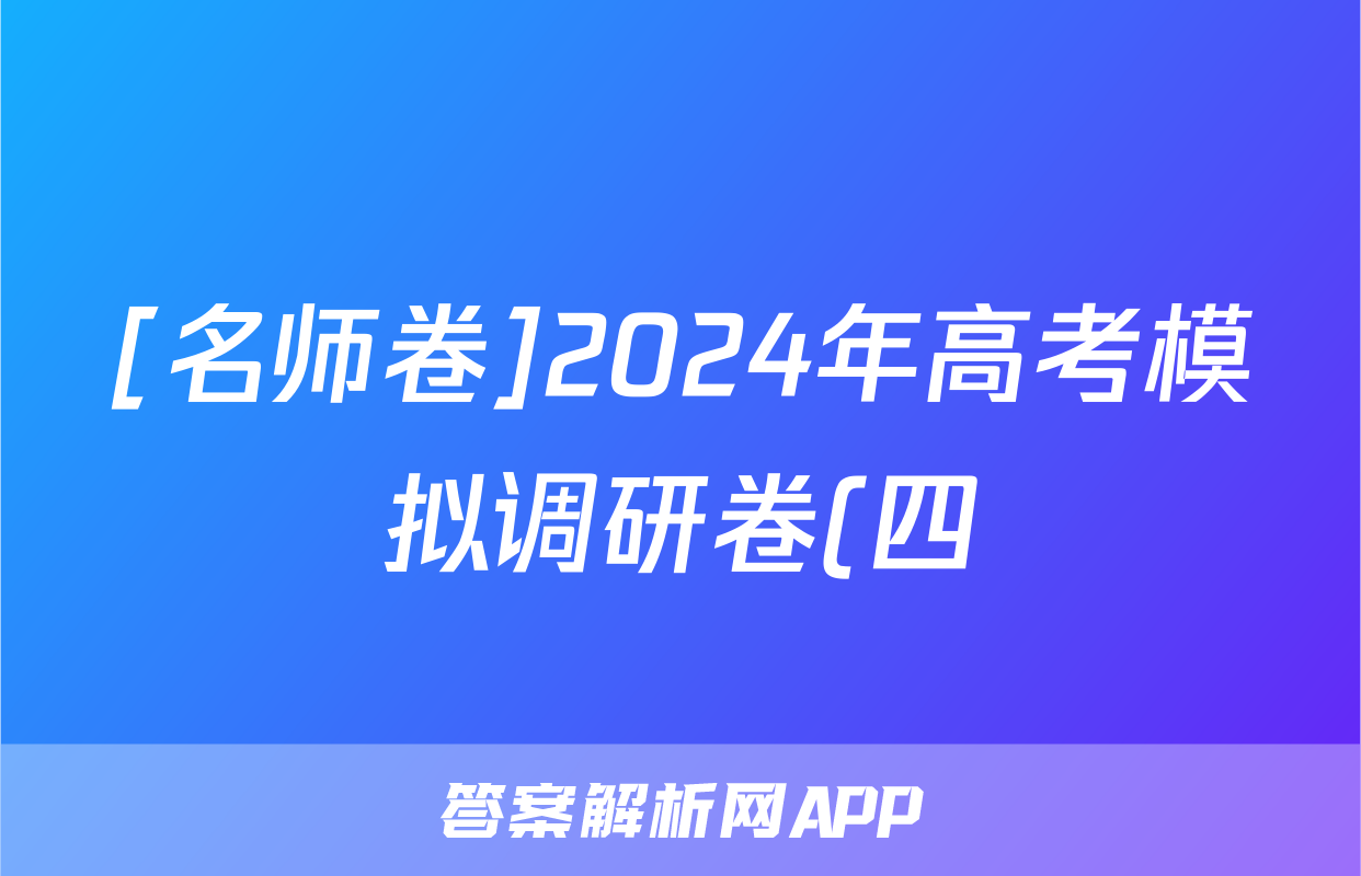 [名师卷]2024年高考模拟调研卷(四)4文科综合(新教材◇)答案正在持续更新,目前2026届海淀八模答案网为大家整理了相关试题及答案,供大家查缺补漏,高效提升成绩。