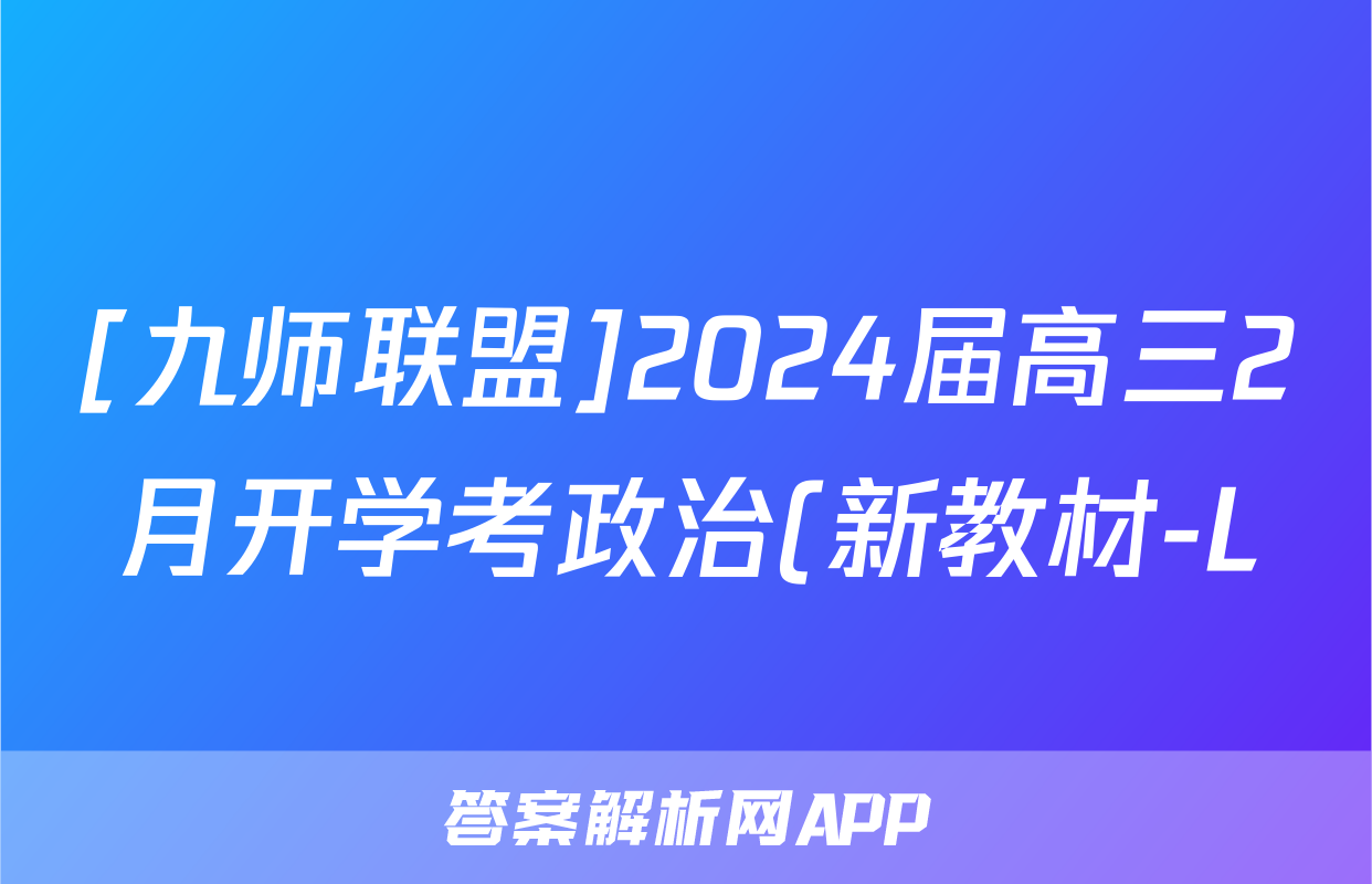 [九师联盟]2024届高三2月开学考政治(新教材-L)试题正在持续更新,目前2026届海淀八模答案网为大家整理了相关试题及答案,供大家查缺补漏,高效提升成绩。