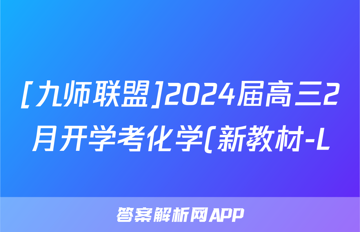 [九师联盟]2024届高三2月开学考化学(新教材-L)试题正在持续更新,目前2026届海淀八模答案网为大家整理了相关试题及答案,供大家查缺补漏,高效提升成绩。