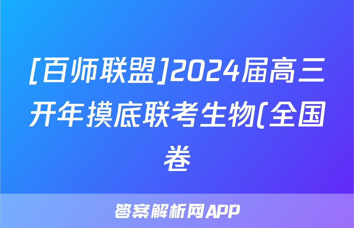 [百师联盟]2024届高三开年摸底联考生物(全国卷)答案正在持续更新,目前2026届海淀八模答案网为大家整理了相关试题及答案,供大家查缺补漏,高效提升成绩。