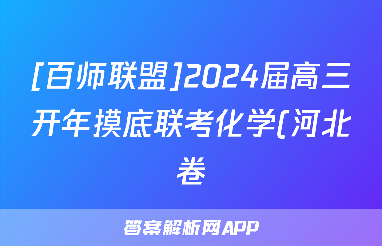 [百师联盟]2024届高三开年摸底联考化学(河北卷)答案正在持续更新,目前2026届海淀八模答案网为大家整理了相关试题及答案,供大家查缺补漏,高效提升成绩。