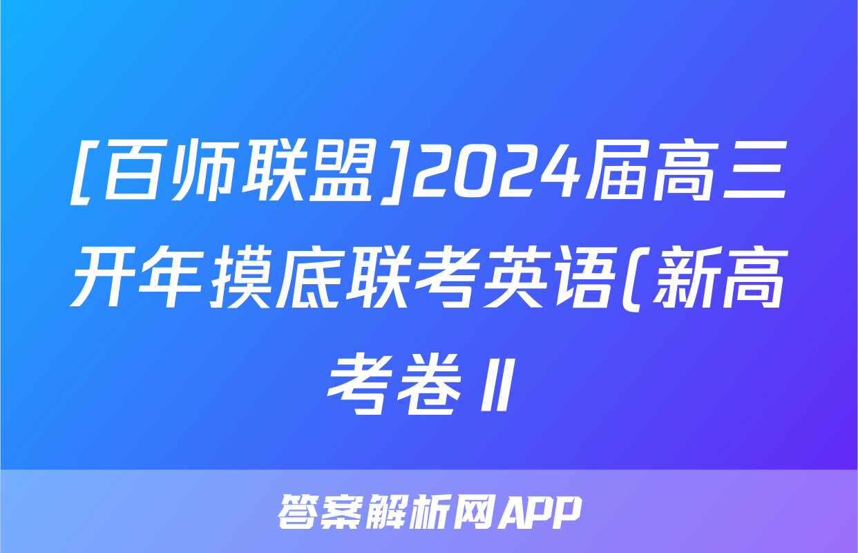 [百师联盟]2024届高三开年摸底联考英语(新高考卷Ⅱ)试题正在持续更新,目前2026届海淀八模答案网为大家整理了相关试题及答案,供大家查缺补漏,高效提升成绩。