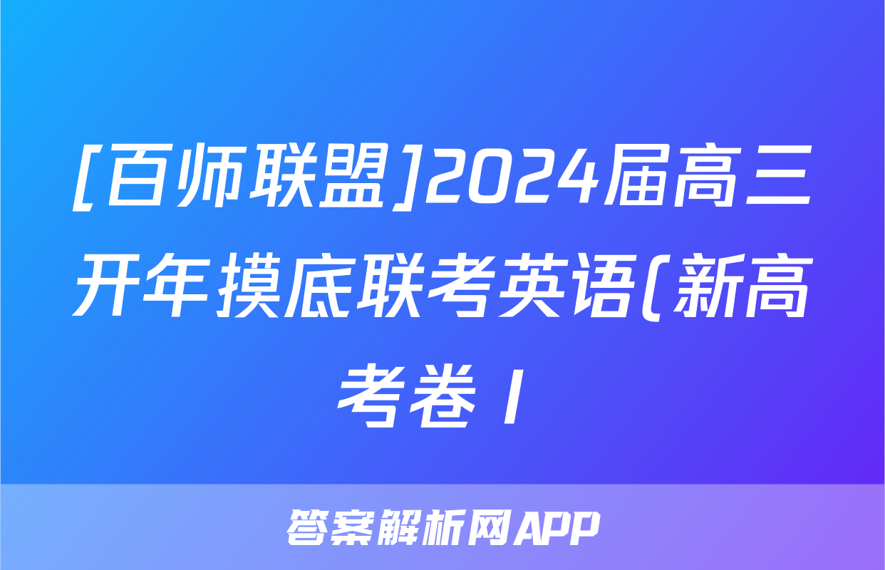 [百师联盟]2024届高三开年摸底联考英语(新高考卷Ⅰ)试题正在持续更新,目前2026届海淀八模答案网为大家整理了相关试题及答案,供大家查缺补漏,高效提升成绩。