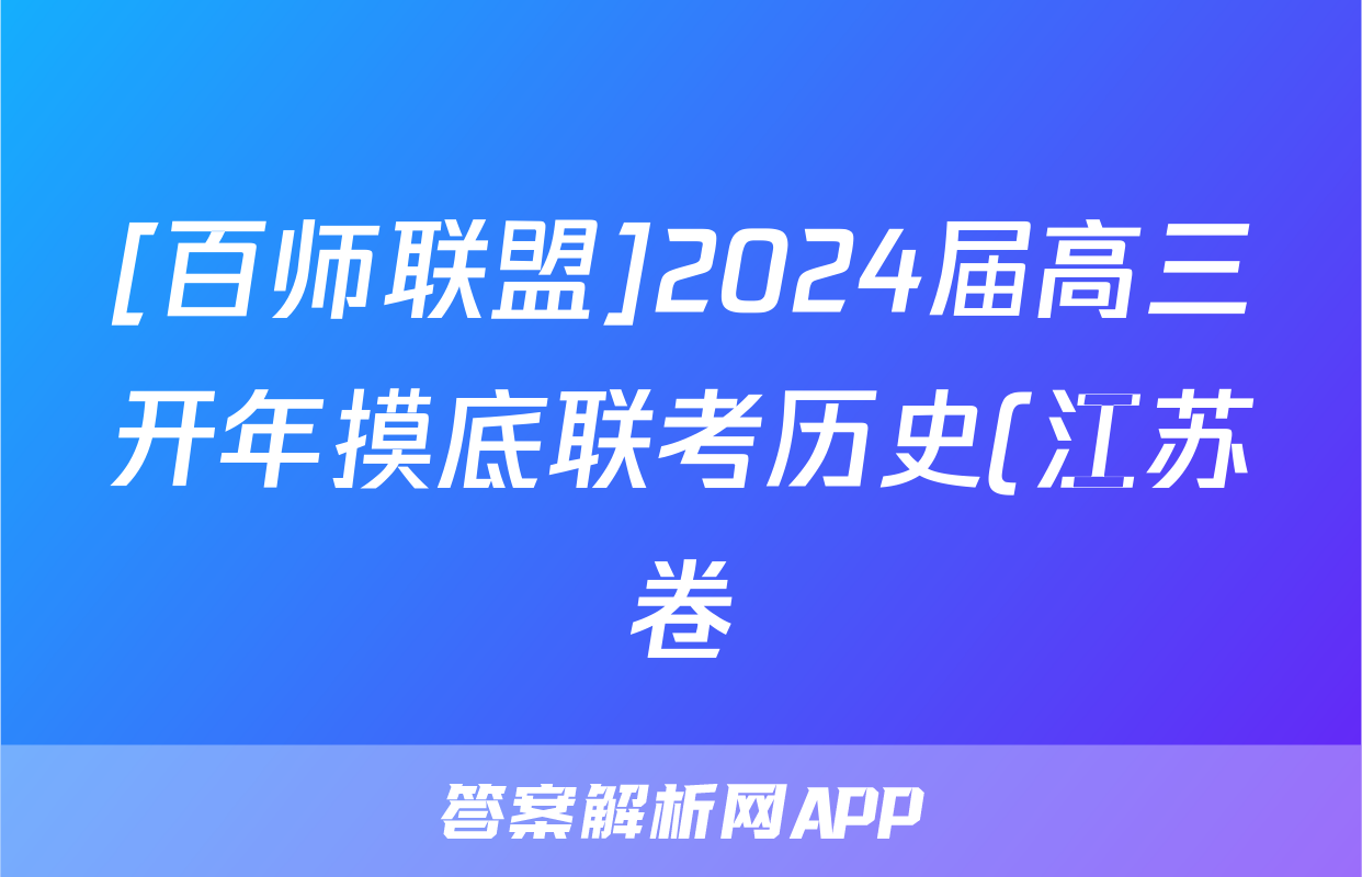 [百师联盟]2024届高三开年摸底联考历史(江苏卷)试题正在持续更新,目前2026届海淀八模答案网为大家整理了相关试题及答案,供大家查缺补漏,高效提升成绩。