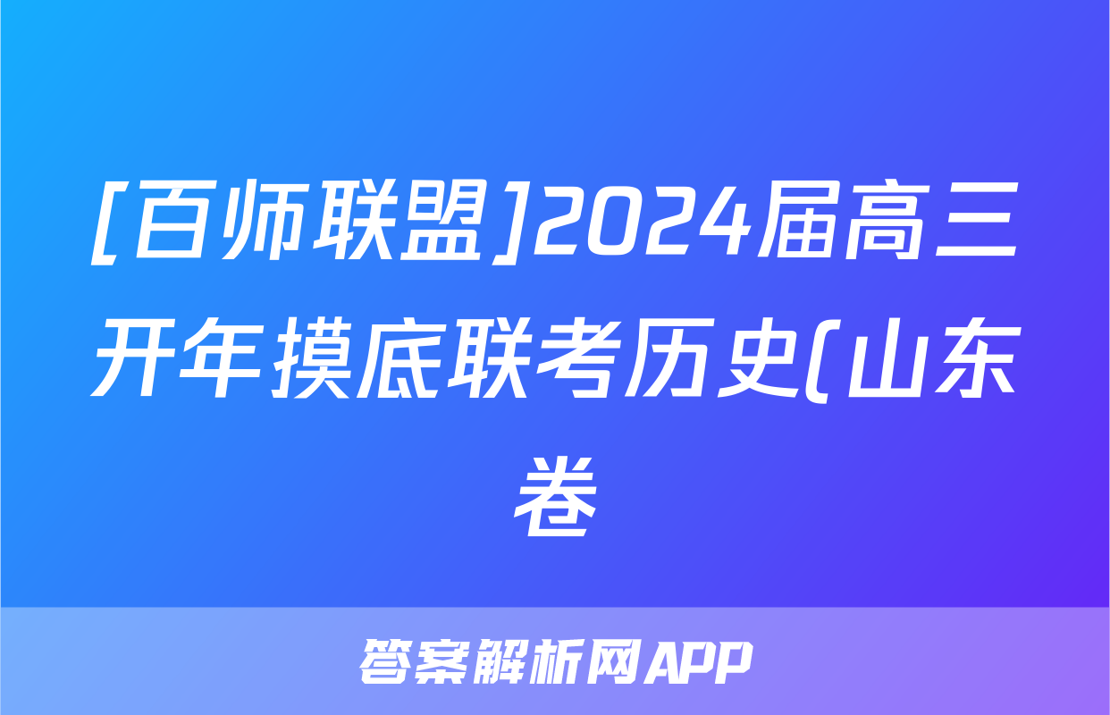[百师联盟]2024届高三开年摸底联考历史(山东卷)试题正在持续更新,目前2026届海淀八模答案网为大家整理了相关试题及答案,供大家查缺补漏,高效提升成绩。