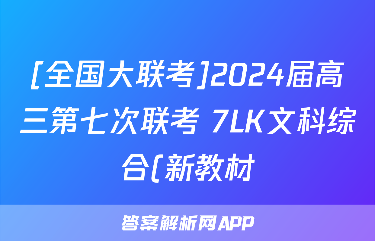 [全国大联考]2024届高三第七次联考 7LK文科综合(新教材)试题