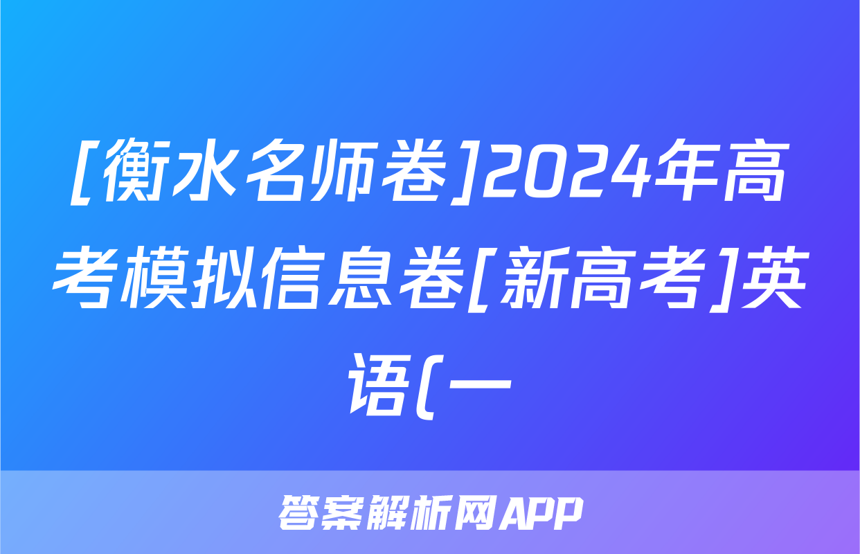 [衡水名师卷]2024年高考模拟信息卷[新高考]英语(一)1答案正在持续更新,目前2026届海淀八模答案网为大家整理了相关试题及答案,供大家查缺补漏,高效提升成绩。