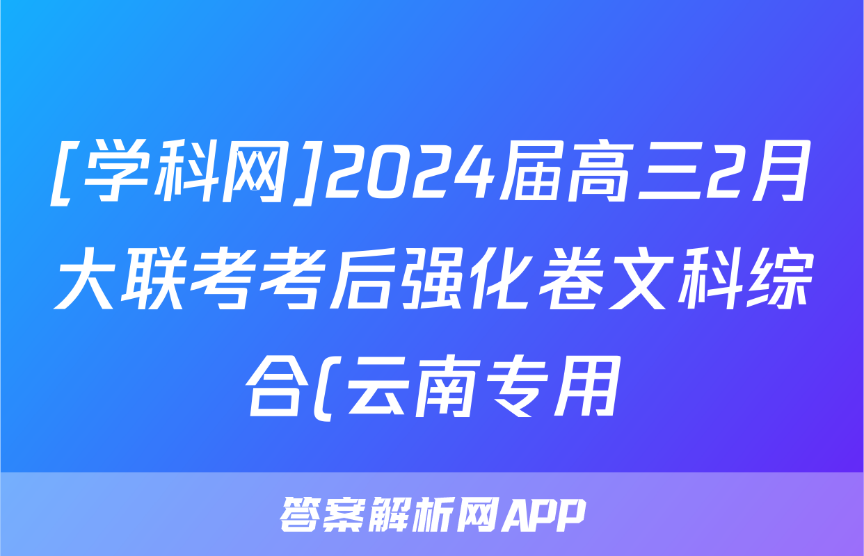 [学科网]2024届高三2月大联考考后强化卷文科综合(云南专用)试题正在持续更新,目前2026届海淀八模答案网为大家整理了相关试题及答案,供大家查缺补漏,高效提升成绩。