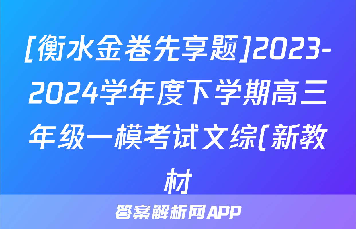 [衡水金卷先享题]2023-2024学年度下学期高三年级一模考试文综(新教材)试题