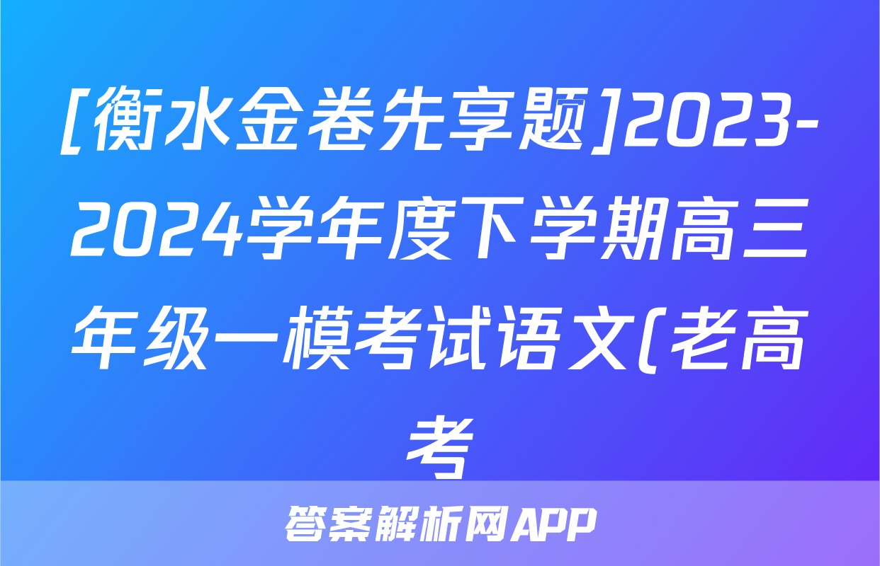 [衡水金卷先享题]2023-2024学年度下学期高三年级一模考试语文(老高考)试题正在持续更新,目前2026届海淀八模答案网为大家整理了相关试题及答案,供大家查缺补漏,高效提升成绩。