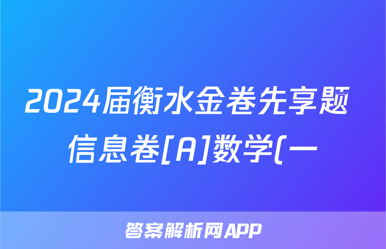 1、2024届衡水金卷先享题[信息卷](一)1数学(A)试题