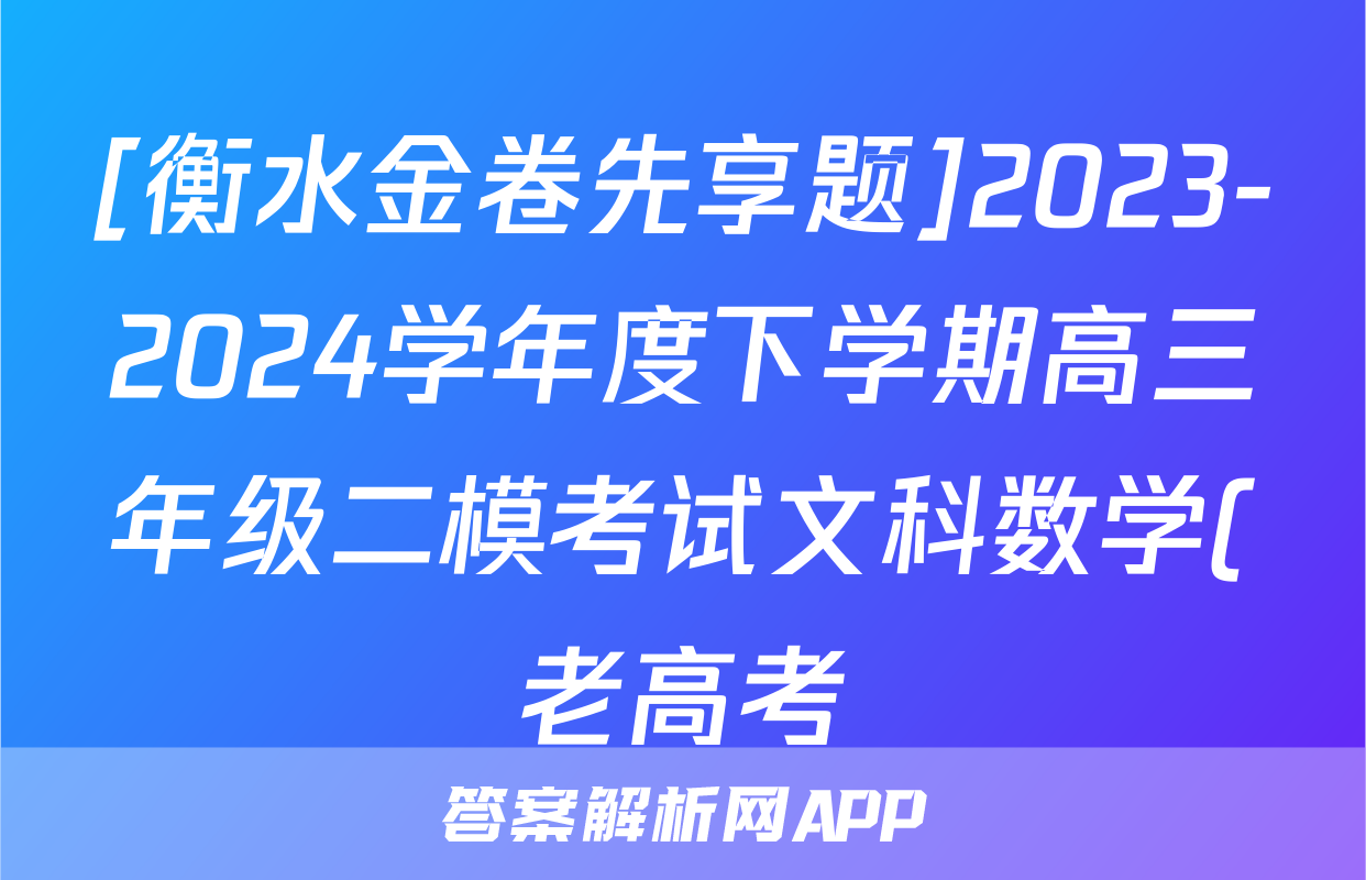 [衡水金卷先享题]2023-2024学年度下学期高三年级二模考试文科数学(老高考)试题正在持续更新,目前2026届海淀八模答案网为大家整理了相关试题及答案,供大家查缺补漏,高效提升成绩。