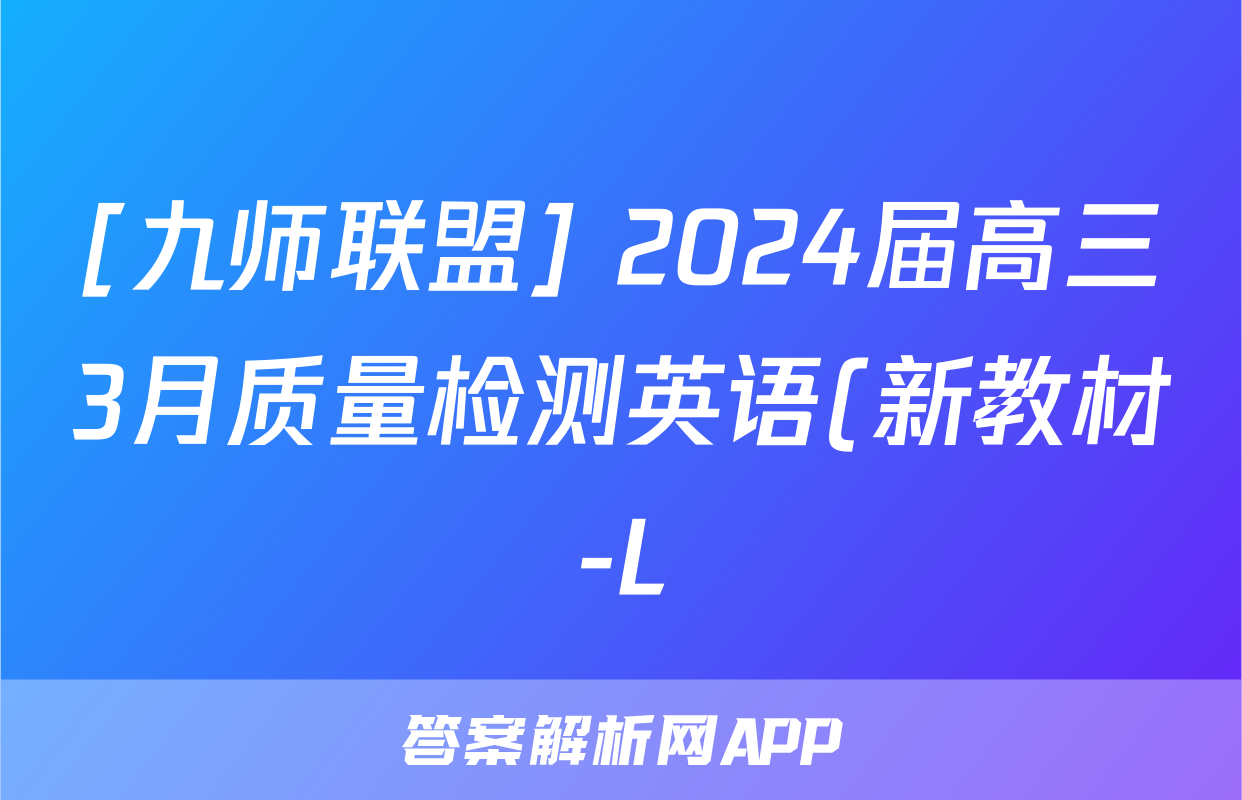 [九师联盟] 2024届高三3月质量检测英语(新教材-L)答案正在持续更新,目前2026届海淀八模答案网为大家整理了相关试题及答案,供大家查缺补漏,高效提升成绩。