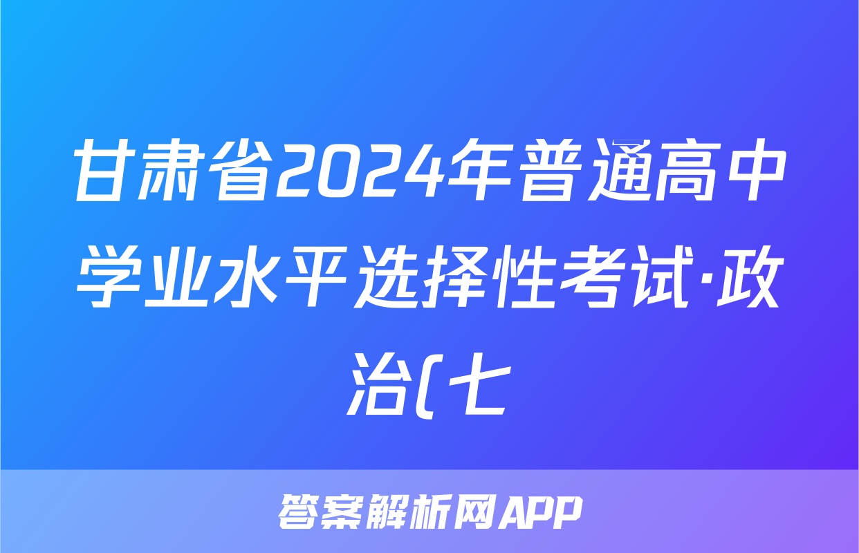 甘肃省2024年普通高中学业水平选择性考试·政治(七)7[24·(新高考)ZX·MNJ·政治·GS]试题正在持续更新,目前2026届海淀八模答案网为大家整理了相关试题及答案,供大家查缺补漏,高效提升成绩。