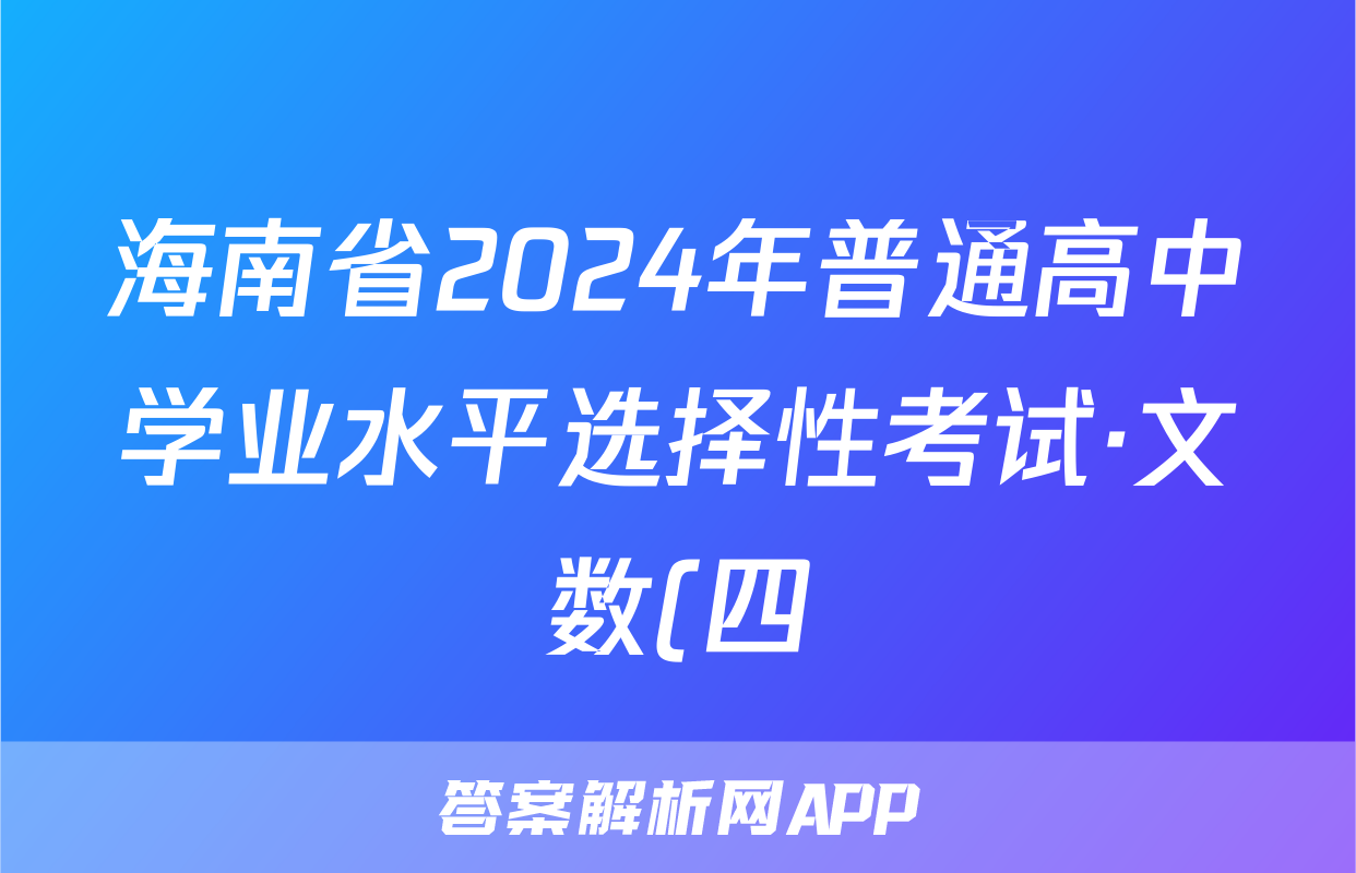 海南省2024年普通高中学业水平选择性考试·文数(四)4[24·(新高考)ZX·MNJ·文数·HAIN]试题正在持续更新,目前2026届海淀八模答案网为大家整理了相关试题及答案,供大家查缺补漏,高效提升成绩。