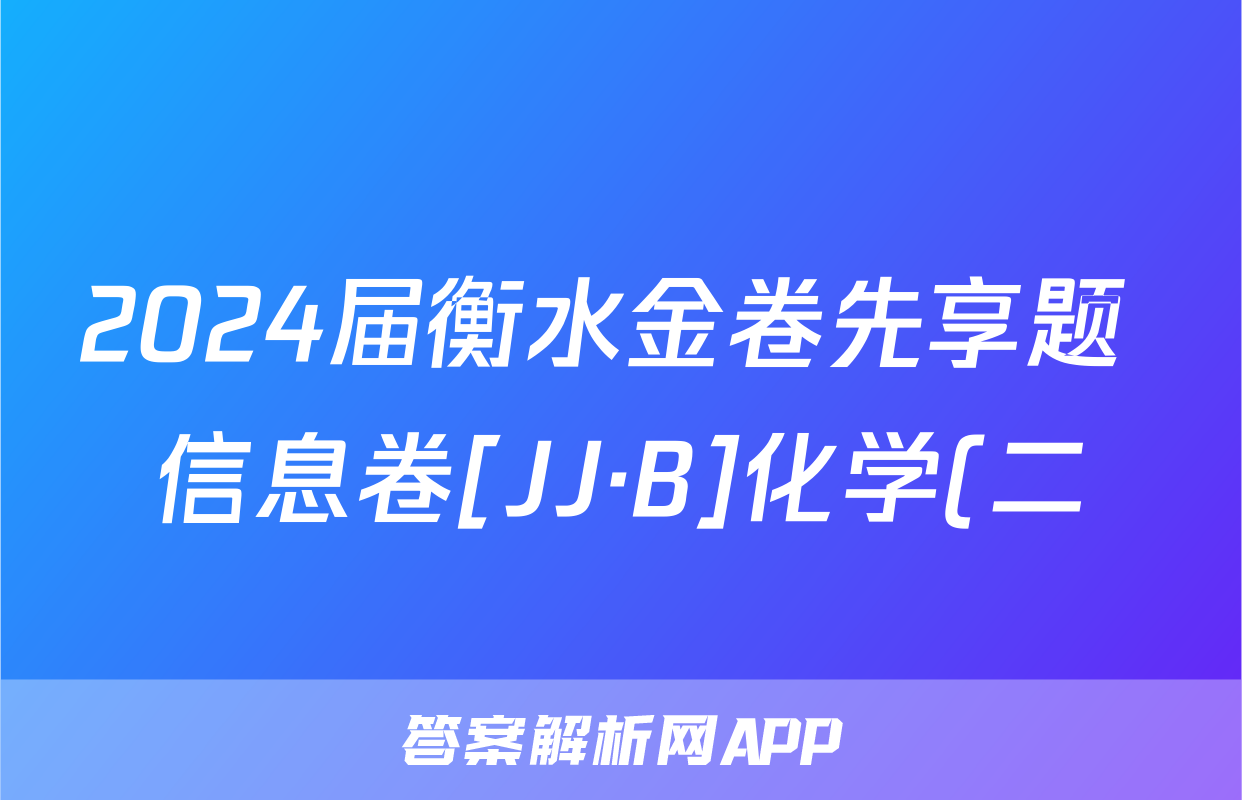 2024届衡水金卷先享题 信息卷[JJ·B]化学(二)2答案正在持续更新,目前2026届海淀八模答案网为大家整理了相关试题及答案,供大家查缺补漏,高效提升成绩。