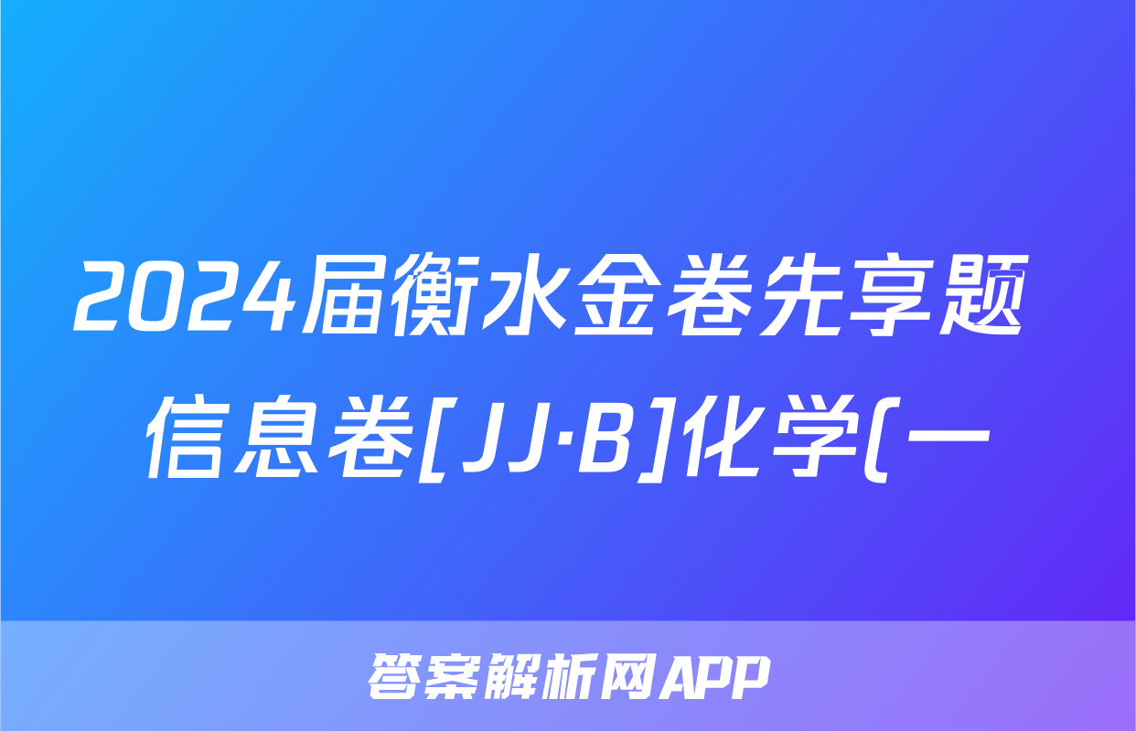 2024届衡水金卷先享题 信息卷[JJ·B]化学(一)1答案正在持续更新,目前2026届海淀八模答案网为大家整理了相关试题及答案,供大家查缺补漏,高效提升成绩。