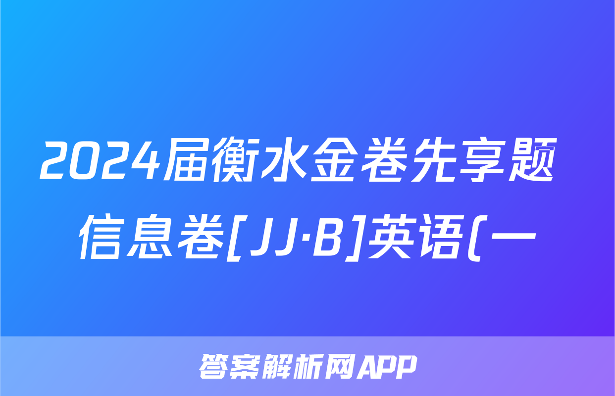 2024届衡水金卷先享题 信息卷[JJ·B]英语(一)1答案正在持续更新,目前2026届海淀八模答案网为大家整理了相关试题及答案,供大家查缺补漏,高效提升成绩。