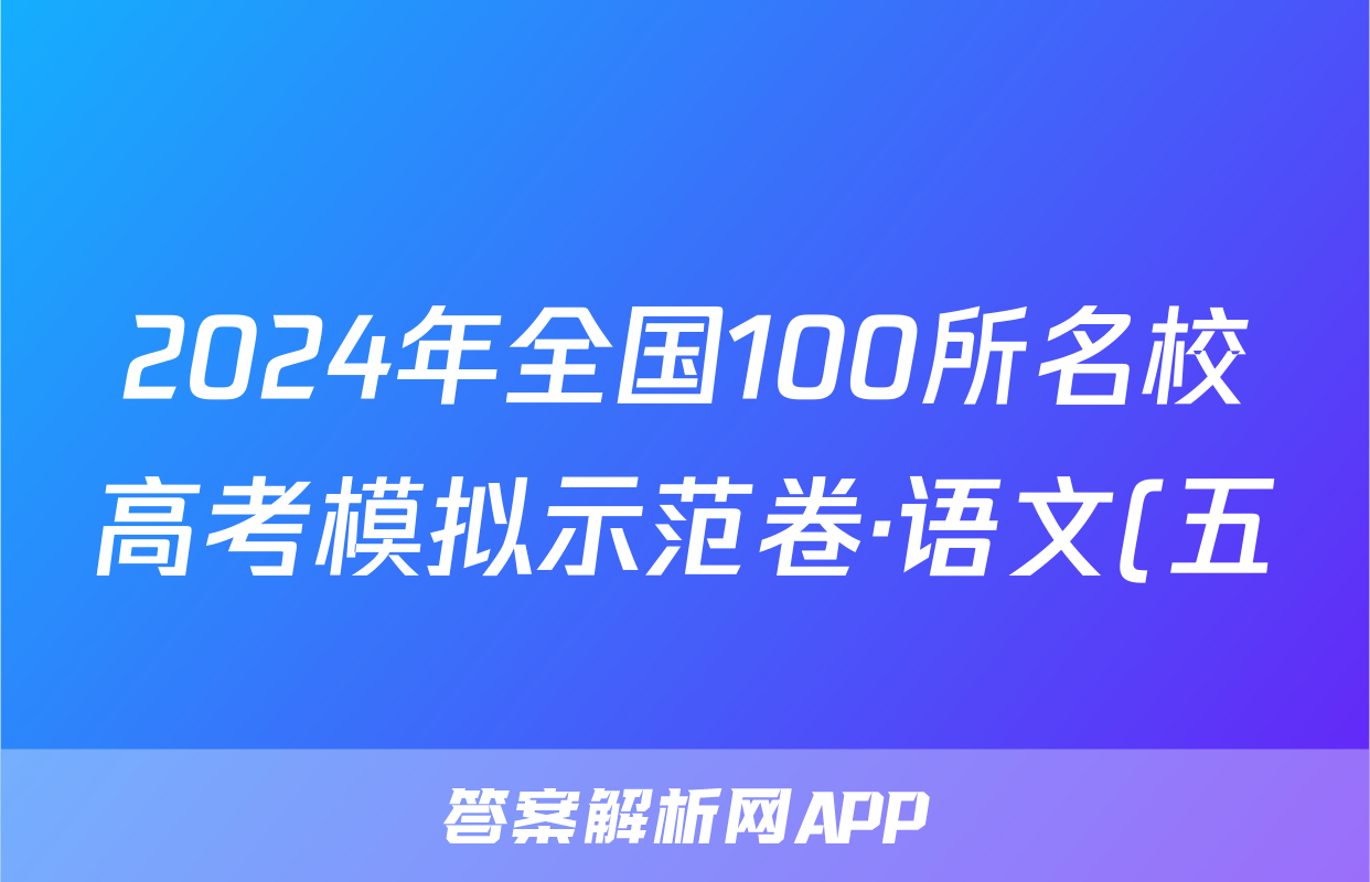 2024年全国100所名校高考模拟示范卷·语文(五)5[24新教材老高考·ZX·MNJ·语文·N]试题正在持续更新,目前2026届海淀八模答案网为大家整理了相关试题及答案,供大家查缺补漏,高效提升成绩。
