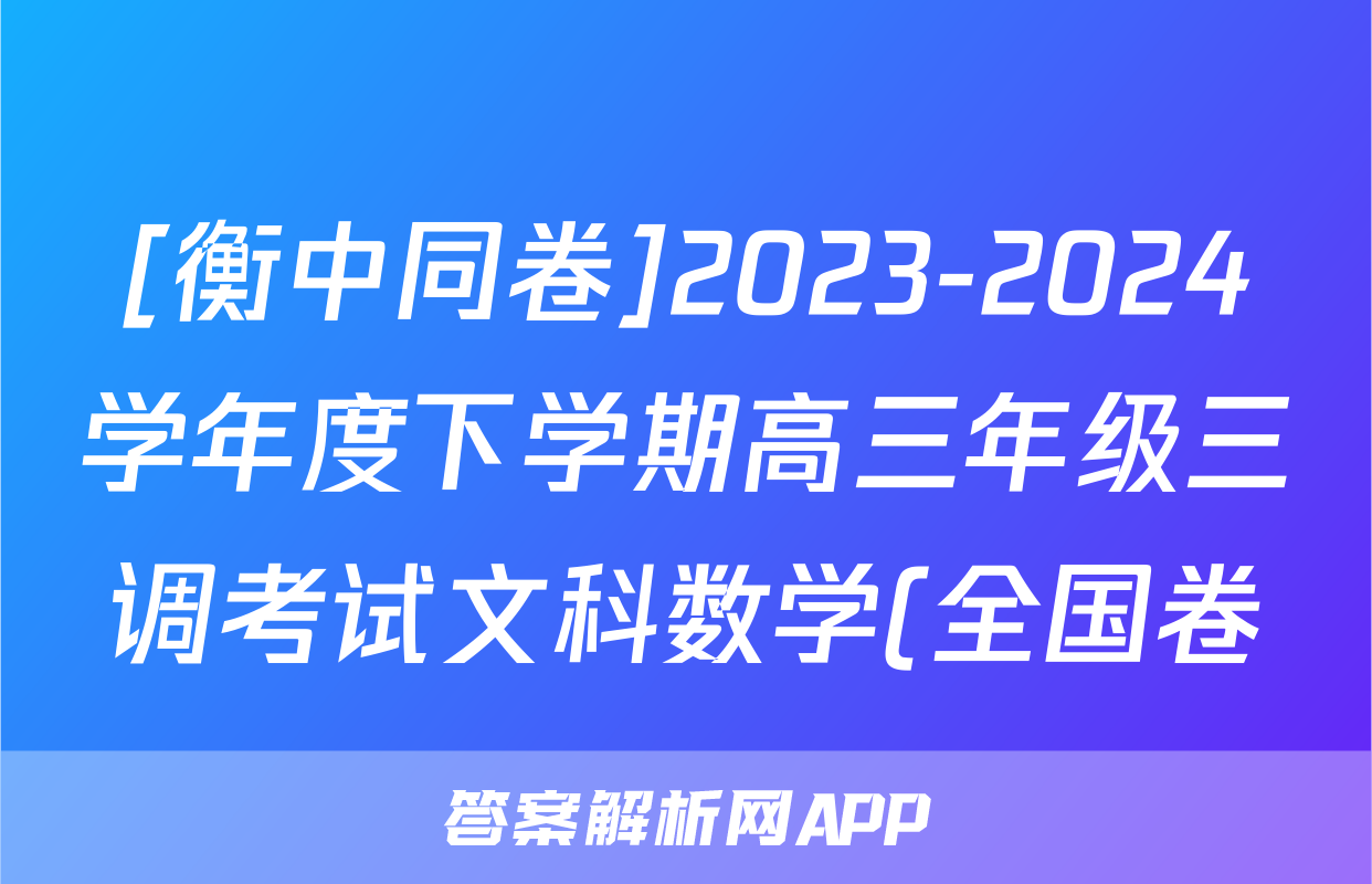 [衡中同卷]2023-2024学年度下学期高三年级三调考试文科数学(全国卷)试题正在持续更新,目前2026届海淀八模答案网为大家整理了相关试题及答案,供大家查缺补漏,高效提升成绩。