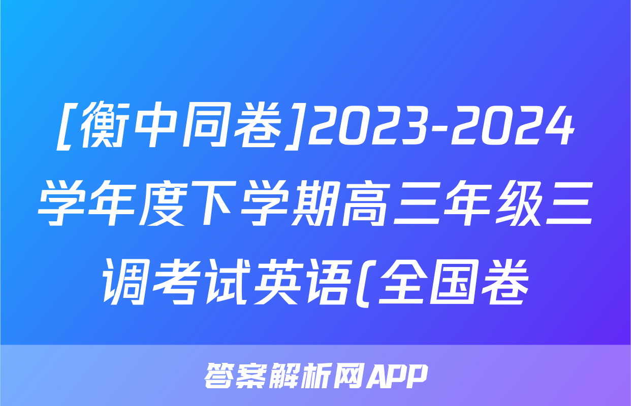 [衡中同卷]2023-2024学年度下学期高三年级三调考试英语(全国卷)试题正在持续更新,目前2026届海淀八模答案网为大家整理了相关试题及答案,供大家查缺补漏,高效提升成绩。