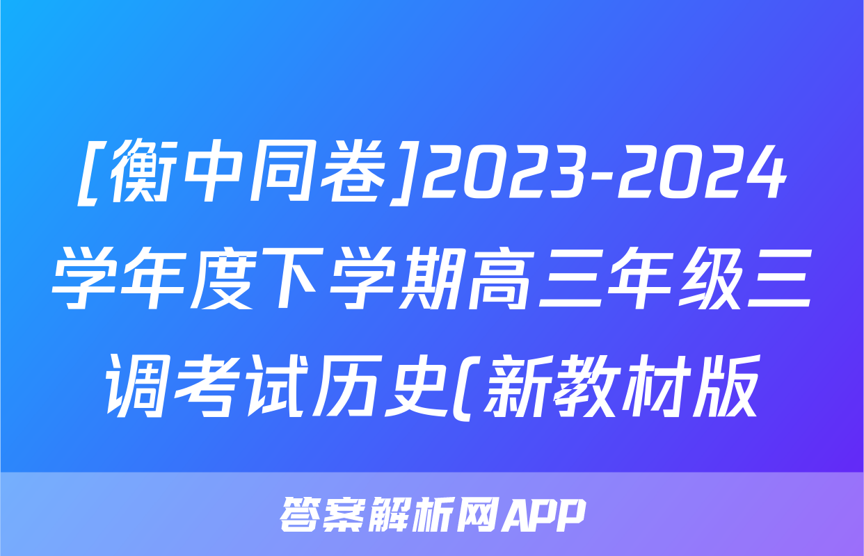 [衡中同卷]2023-2024学年度下学期高三年级三调考试历史(新教材版)试题正在持续更新,目前2026届海淀八模答案网为大家整理了相关试题及答案,供大家查缺补漏,高效提升成绩。