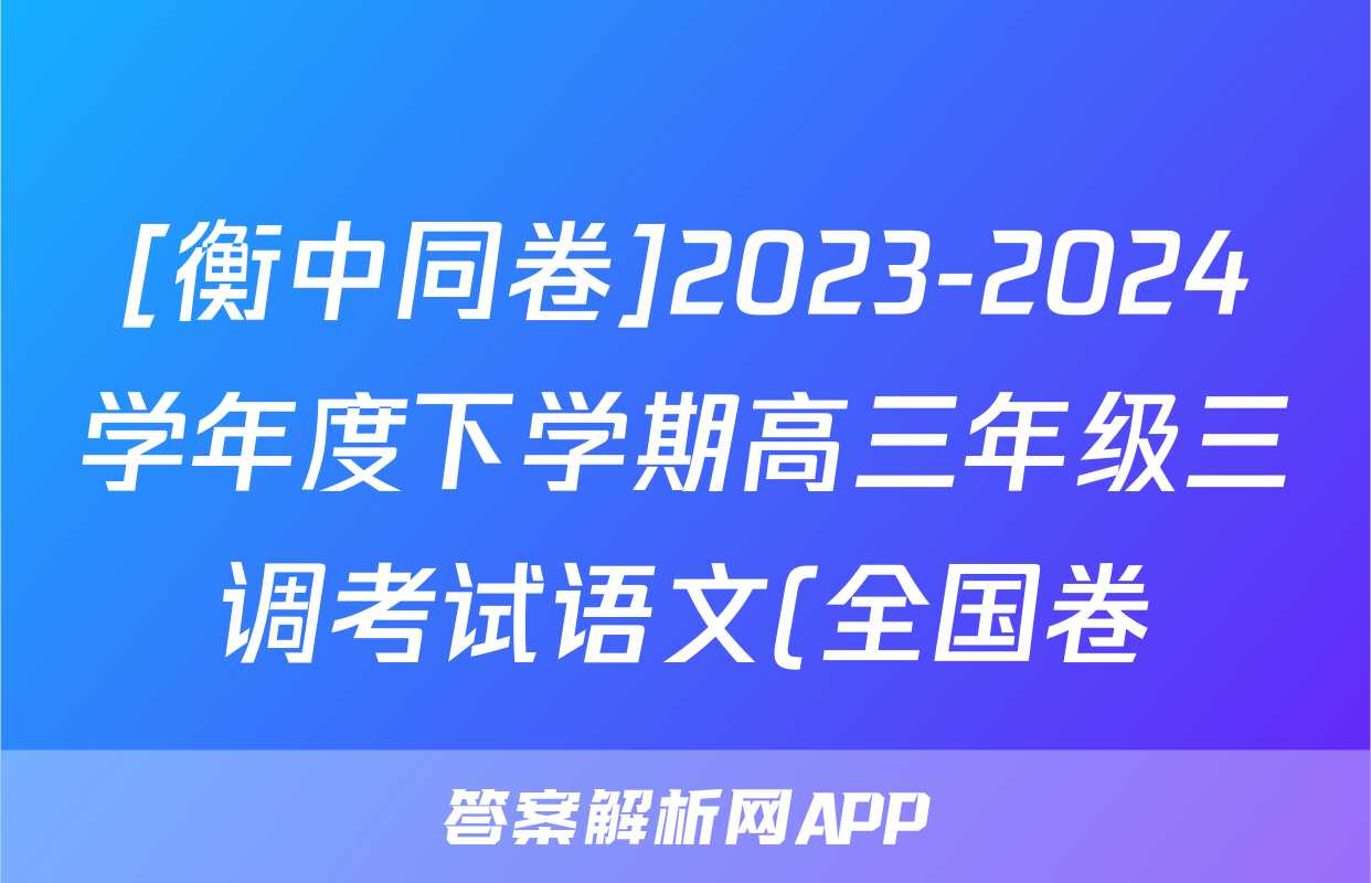 [衡中同卷]2023-2024学年度下学期高三年级三调考试语文(全国卷)试题正在持续更新,目前2026届海淀八模答案网为大家整理了相关试题及答案,供大家查缺补漏,高效提升成绩。