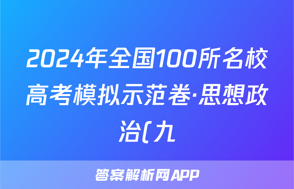 2024年全国100所名校高考模拟示范卷·思想政治(九)9[24新教材老高考·ZX·MNJ·思想政治·QG]试题正在持续更新,目前2026届海淀八模答案网为大家整理了相关试题及答案,供大家查缺补漏,高效提升成绩。