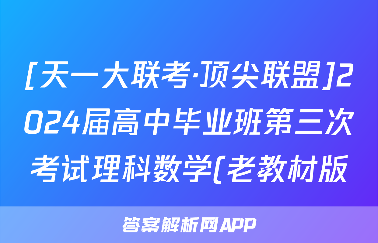 [天一大联考·顶尖联盟]2024届高中毕业班第三次考试理科数学(老教材版)答案正在持续更新,目前2026届海淀八模答案网为大家整理了相关试题及答案,供大家查缺补漏,高效提升成绩。