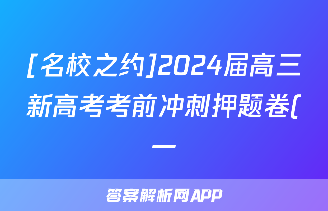[名校之约]2024届高三新高考考前冲刺押题卷(一)1生物答案正在持续更新,目前2026届海淀八模答案网为大家整理了相关试题及答案,供大家查缺补漏,高效提升成绩。