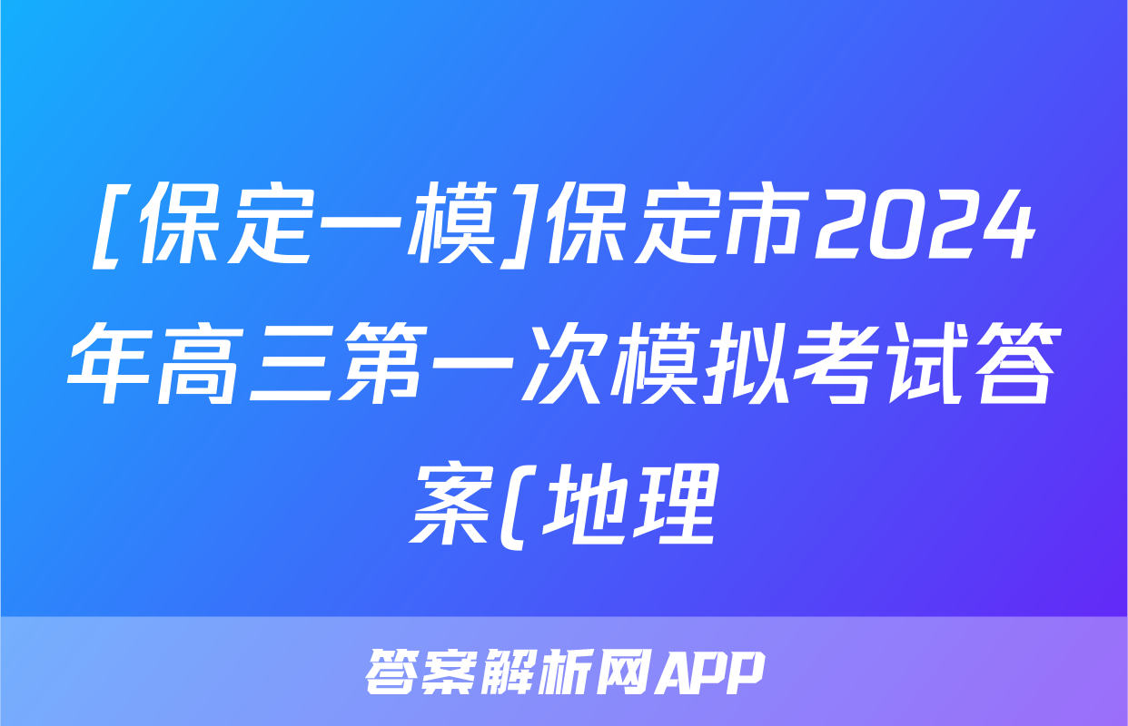 [保定一模]保定市2024年高三第一次模拟考试答案(地理)正在持续更新,目前2026届海淀八模答案网为大家整理了相关试题及答案,供大家查缺补漏,高效提升成绩。