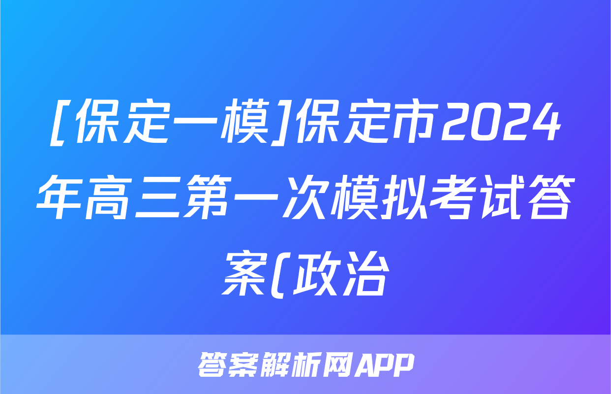 [保定一模]保定市2024年高三第一次模拟考试答案(政治)正在持续更新,目前2026届海淀八模答案网为大家整理了相关试题及答案,供大家查缺补漏,高效提升成绩。