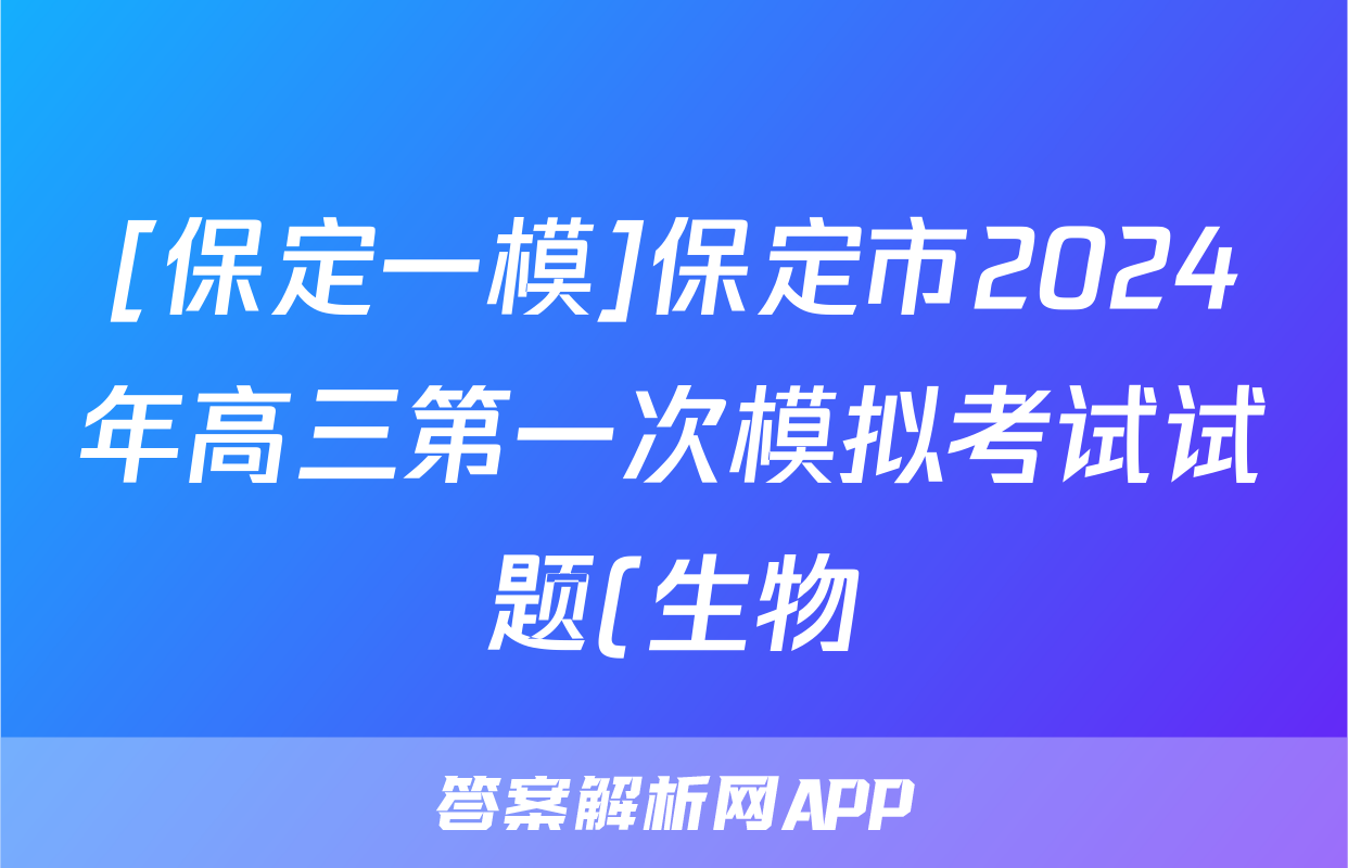 [保定一模]保定市2024年高三第一次模拟考试试题(生物)正在持续更新,目前2026届海淀八模答案网为大家整理了相关试题及答案,供大家查缺补漏,高效提升成绩。