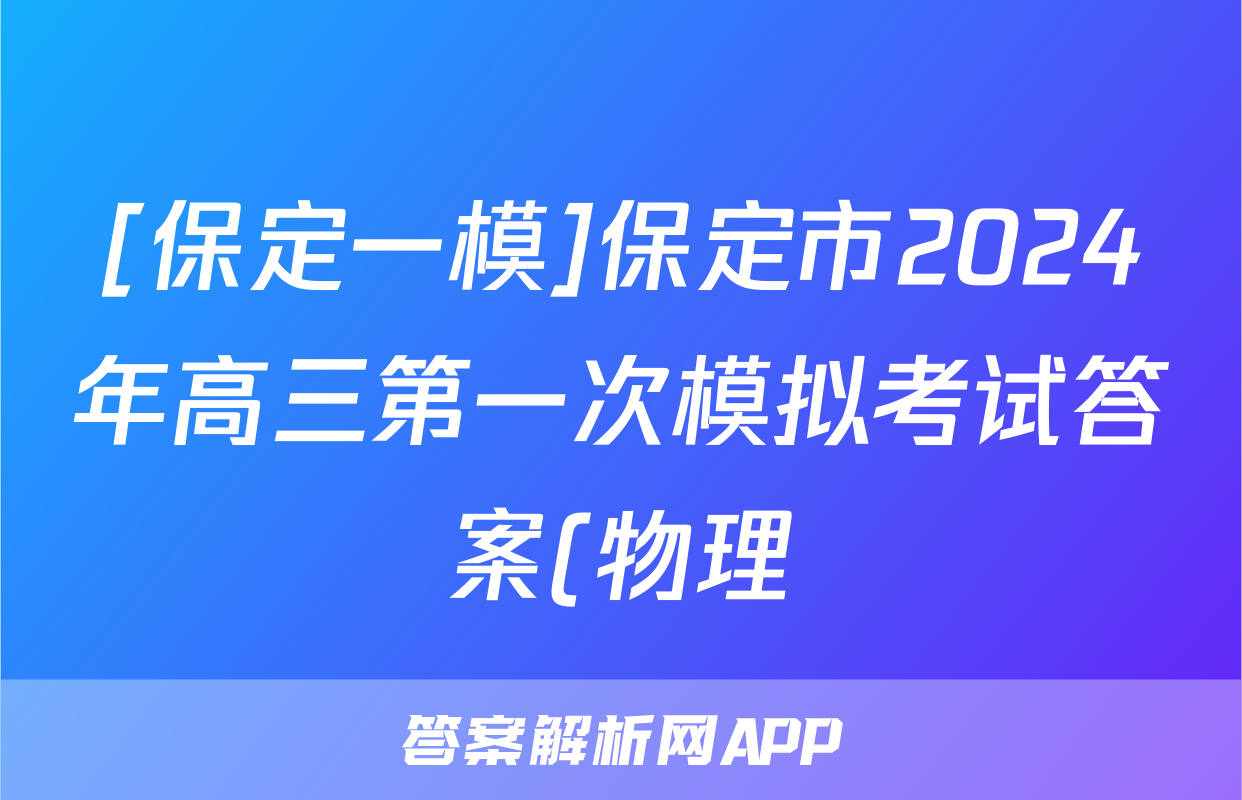 [保定一模]保定市2024年高三第一次模拟考试答案(物理)正在持续更新,目前2026届海淀八模答案网为大家整理了相关试题及答案,供大家查缺补漏,高效提升成绩。