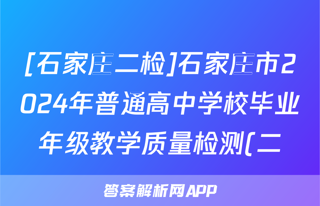 [石家庄二检]石家庄市2024年普通高中学校毕业年级教学质量检测(二)2试题(化学)正在持续更新,目前2026届海淀八模答案网为大家整理了相关试题及答案,供大家查缺补漏,高效提升成绩。